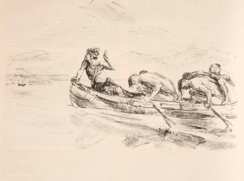 Das Kanu mit den Huronen verläßt die Biberburg