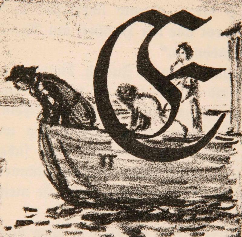 Initial E (Tom ist versenkt worden) zum 21. Kapitel