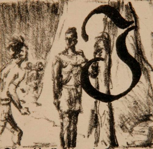Initial I (Unkas gefangen und Magua) zum 24. Kapitel