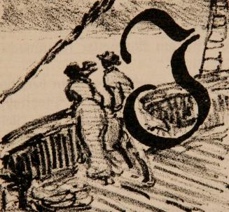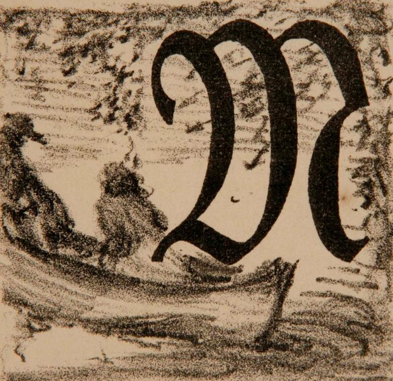 Initial M (Mabel und Jasper im Boot) zum 7. Kapitel