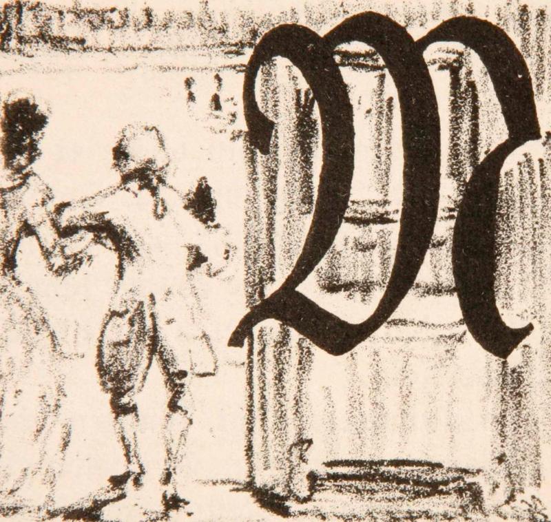 Initial M (Zu Tisch - Le Quoi und Elisabeth) zum 7. Kapitel