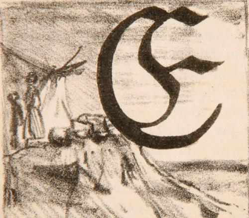 Initial E (Vor dem Zelt) zum 8. Kapitel