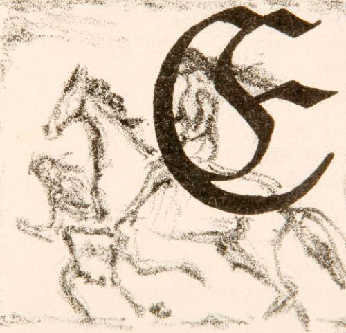 Initial E (Geführte Reiterin) zum 25. Kapitel